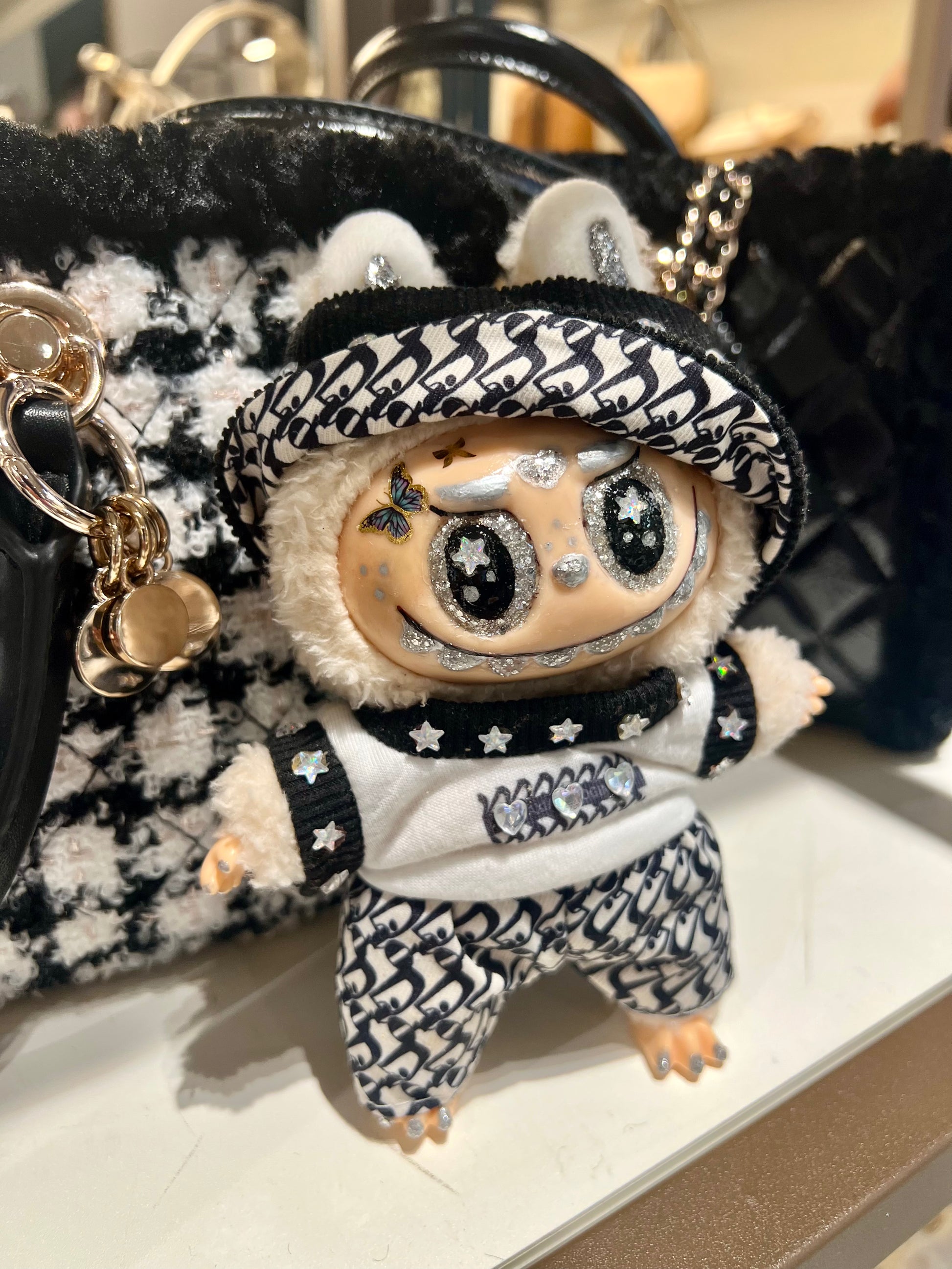 Complétez votre collection de peluches avec la poupée Labubu Cameraman. Chaque poupée est confectionnée à la main avec soin, garantissant un produit unique et de grande qualité. Son design orné de strass ajoute une touche d'éclat et de glamour à cette adorable peluche. Idéale pour les enfants comme pour les collectionneurs, cette poupée est un incontournable pour tous ceux qui apprécient le travail artisanal et le souci du détail.
